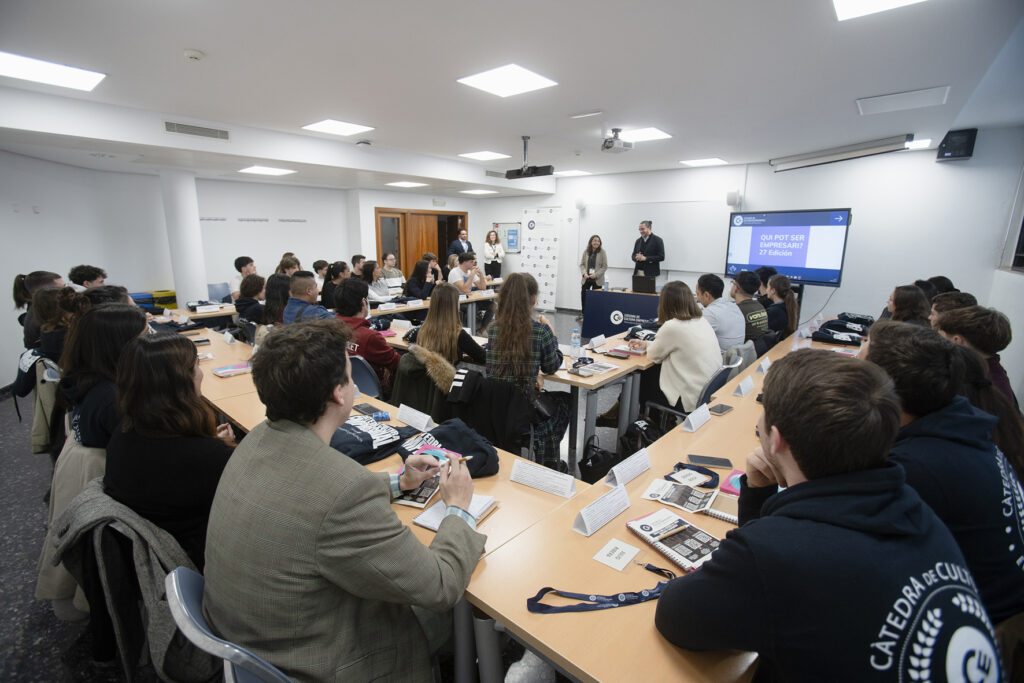 “Qui pot ser empresari?”, la iniciativa más longeva de la Cátedra de Cultura Empresarial, ha formado ya a más de 1.100 alumnos con la participación gratuita de cerca de 190 empresarios y directivos. Dirigido a estudiantes y titulados de cualquier grado de la Universitat de València con inquietud emprendedora, el programa combina clases presenciales experienciales, visitas a empresas líderes y dinámicas prácticas. En estas sesiones no solo se abordan contenidos sobre creación de nuevas empresas, sino también sobre intraemprendimiento, para quienes desarrollarán su carrera en organizaciones ya existentes y puedan impulsar desde dentro nuevas ideas, proyectos y líneas de negocio.